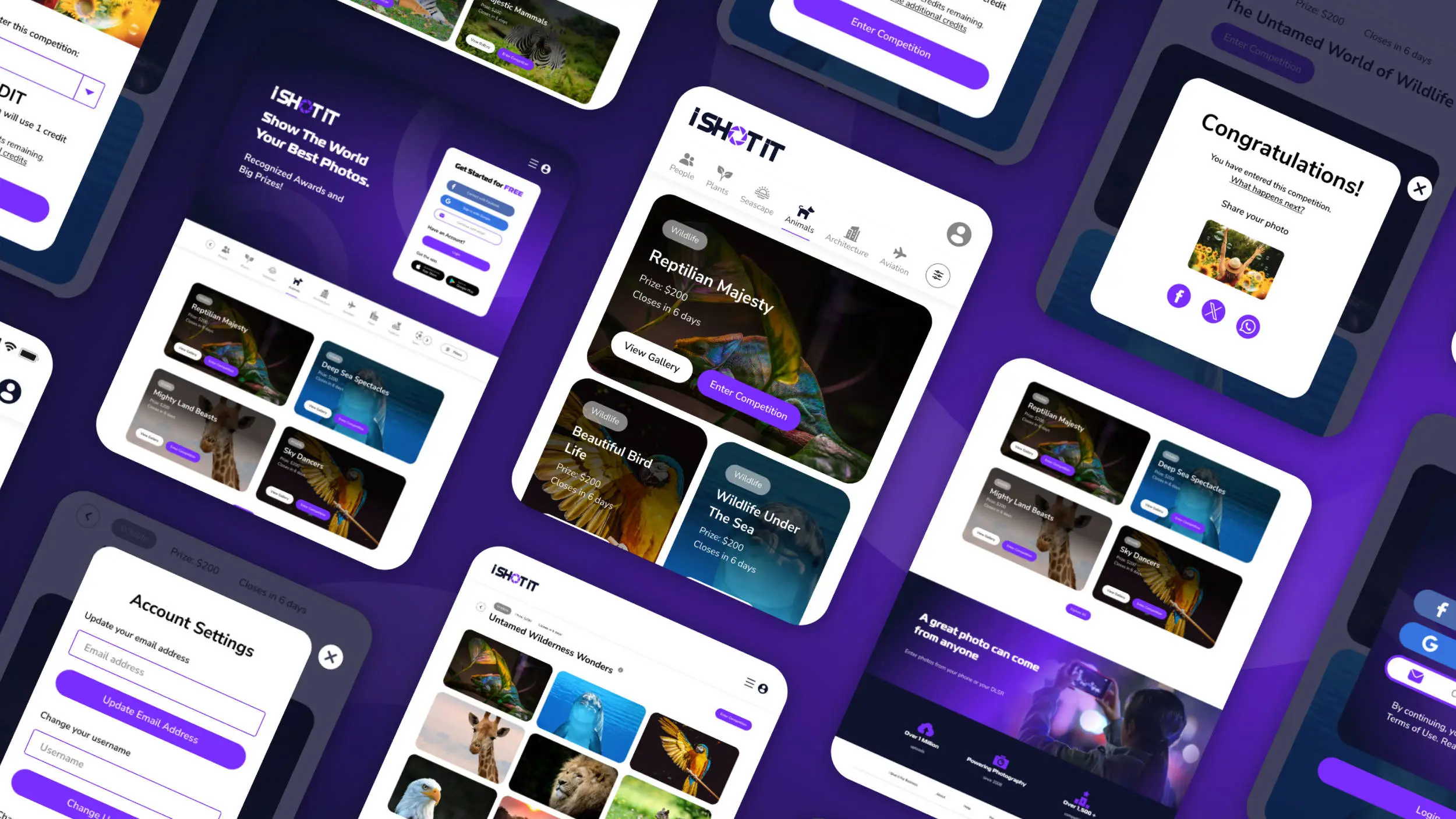 I Shot It needed to modernize its outdated system to meet the demands of a growing user base and improve usability across desktop and mobile platforms. Additionally, the platform had to support white-label partnerships, allowing other businesses to create branded photo competition apps.